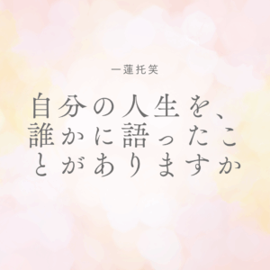 - 一蓮托笑のことを、少しだけ話させてください。 あなたは、 自分の人生を、ちゃんと振り返ったのはいつ…